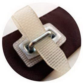 Базовая комплектация состоит из поворотных скоб либо скоб с креплением ремнями, люверсов для монтажа саморезами несъемных креплений.